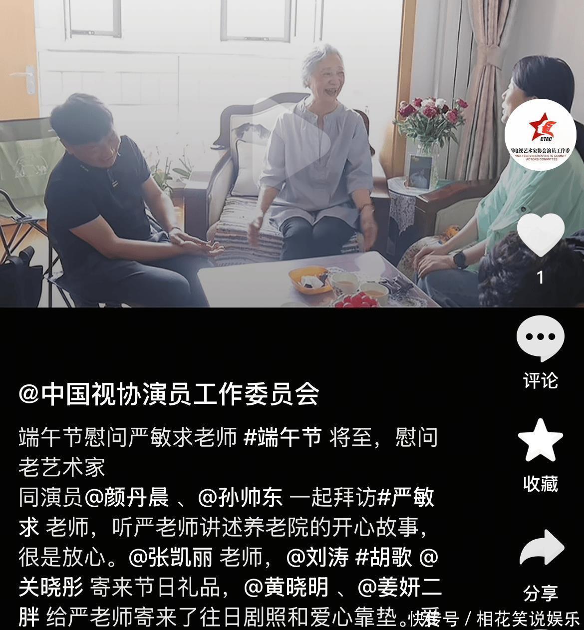 据视协使命委员会称,他们访问严敏求期间,除了安详凝听其在养老院的快乐故事智蛙,还带来了黄晓明、姜妍寄来的往常剧照,以及关晓彤、刘涛、张凯丽、胡歌送的节日礼物。