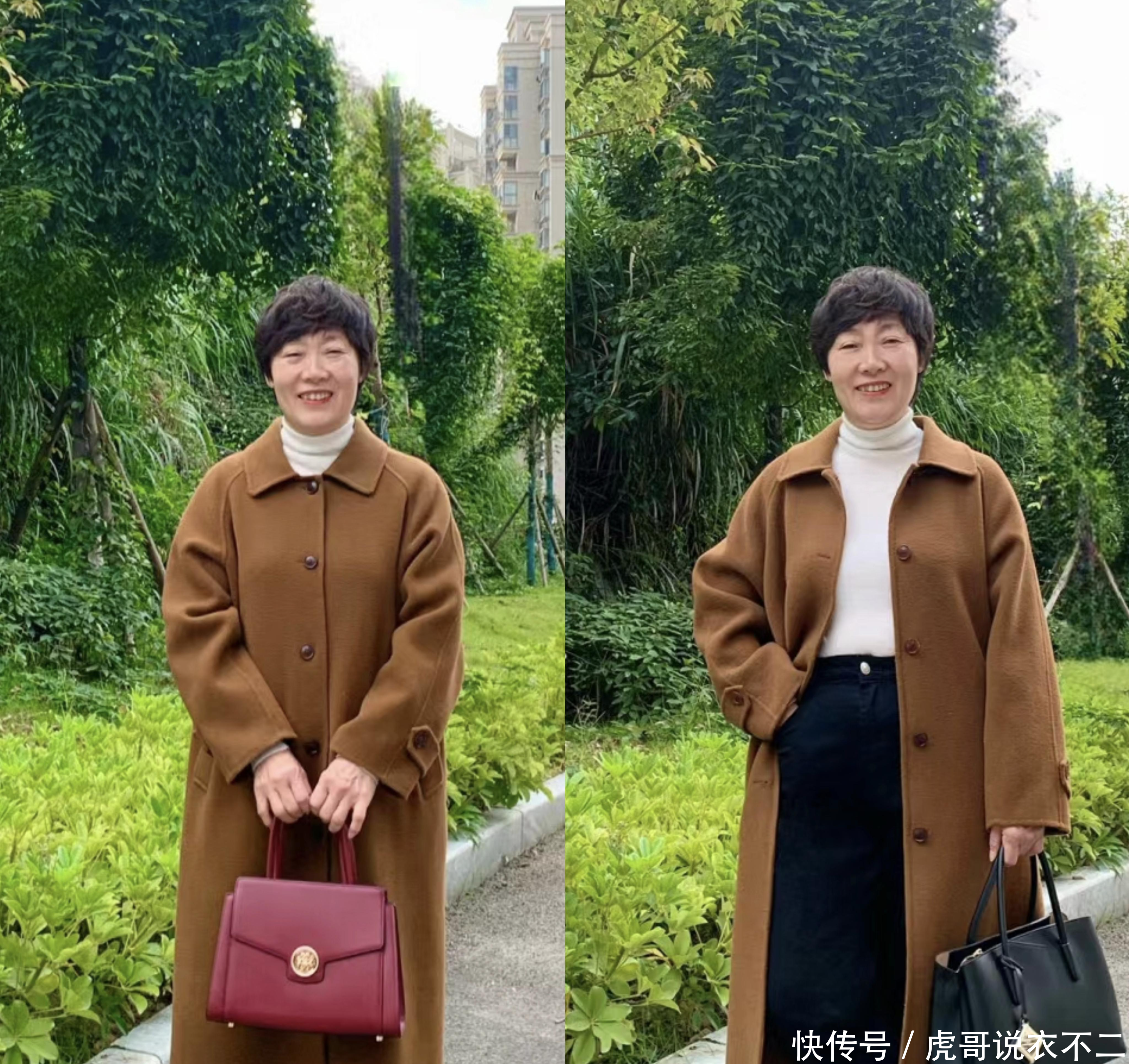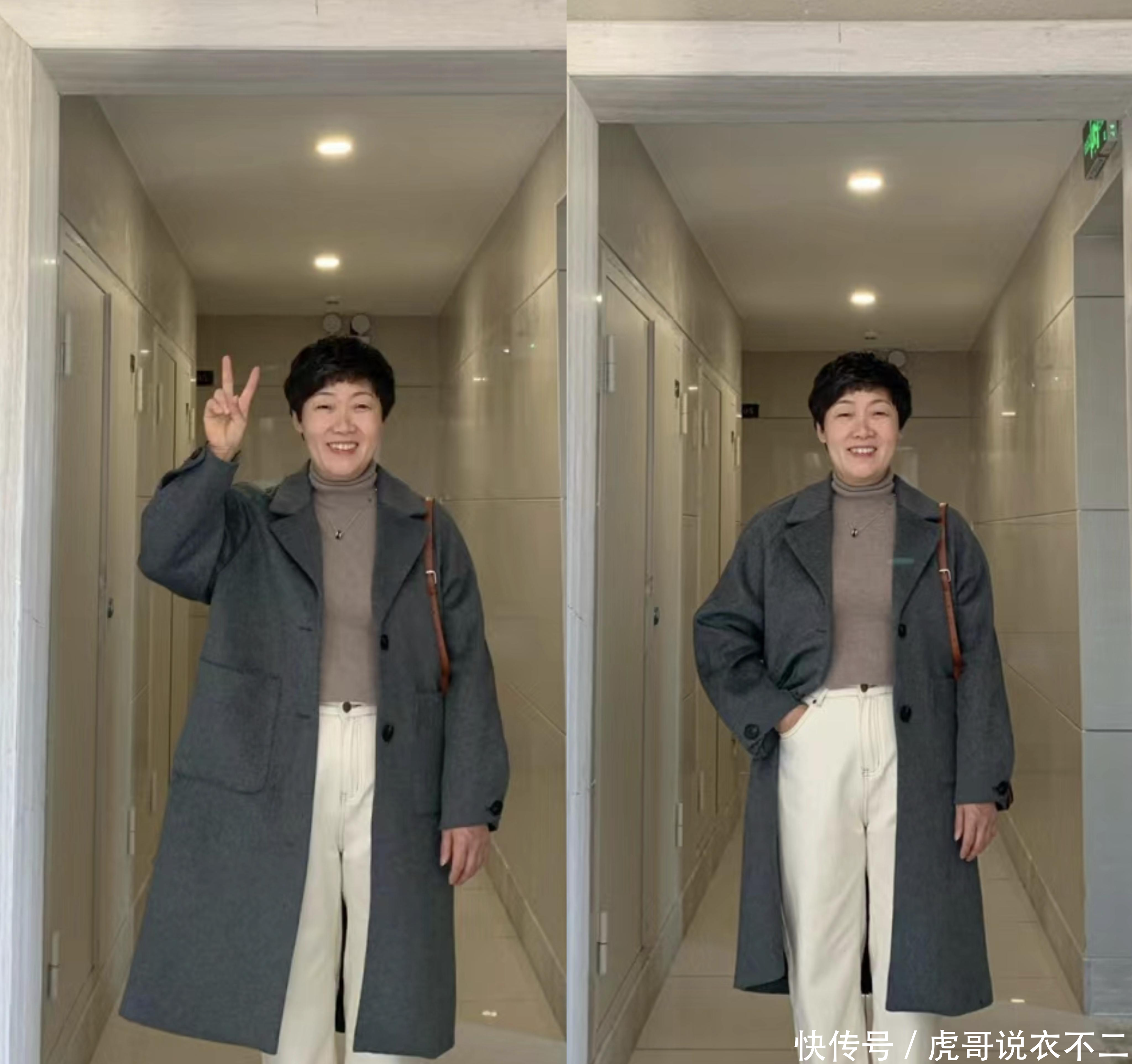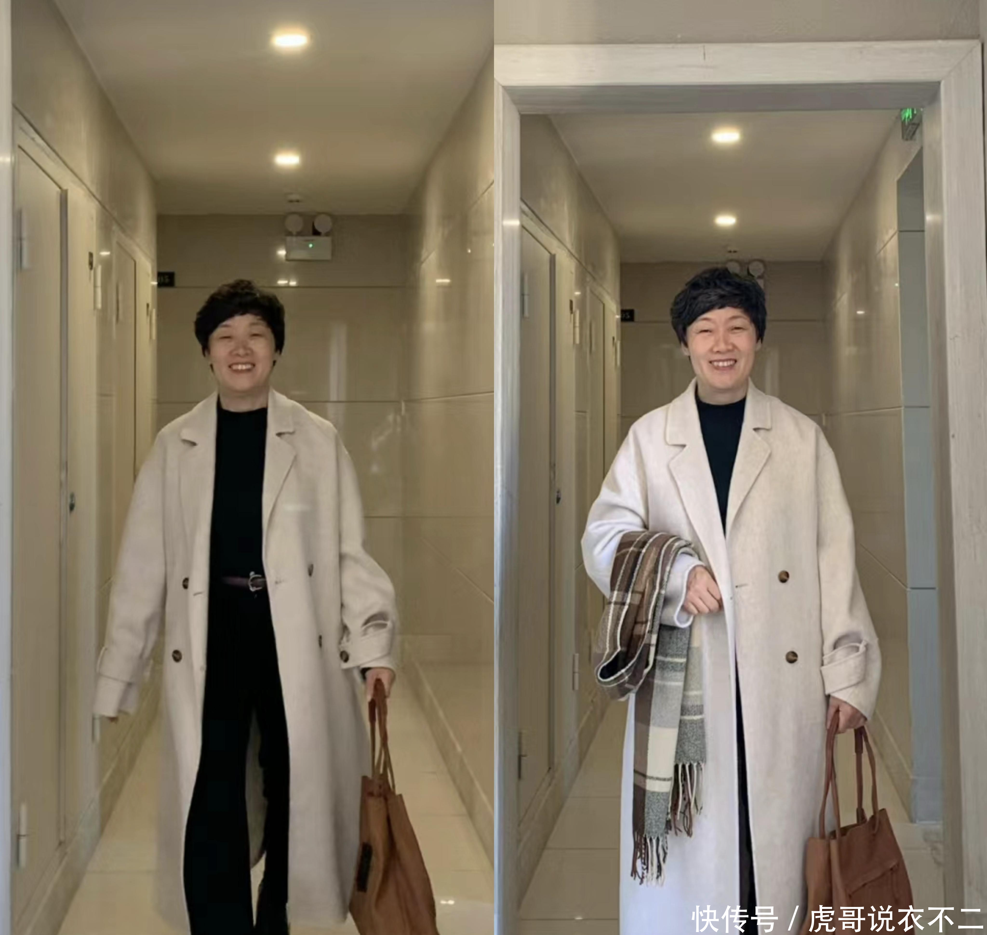这款大衣的质感仍是比拟赫然的,内搭的玄色单品永久不会逾期,匡助各式体格的大龄女性成绩相同的惬意感。